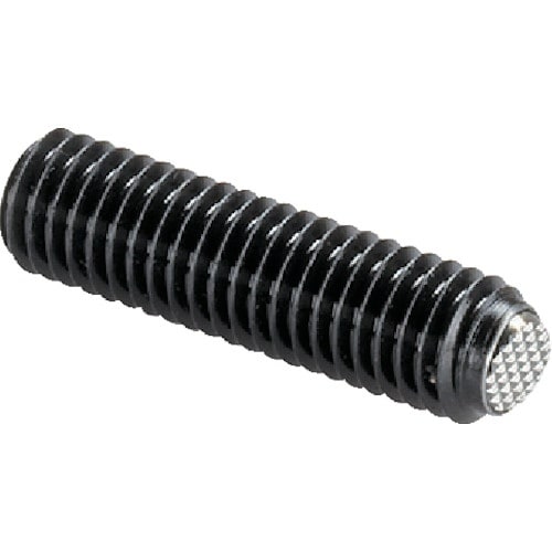 ヘッド無し、面取りボール付セッティングスクリューです。可動ボールの平面部が常にワークとの面接触を保ちます。着座面:セレーション付熱処理鋼です。