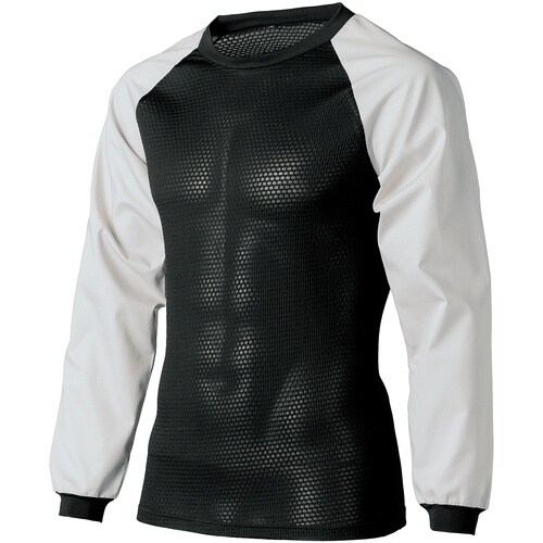 さらりとした肌触りで通気性の高いジャガードメッシュの本体と丈夫な布帛の袖を組み合わせたハイブリッドアンダーレイヤーです。ファン付き作業服ベストのインナーとして最適インナーです。 |