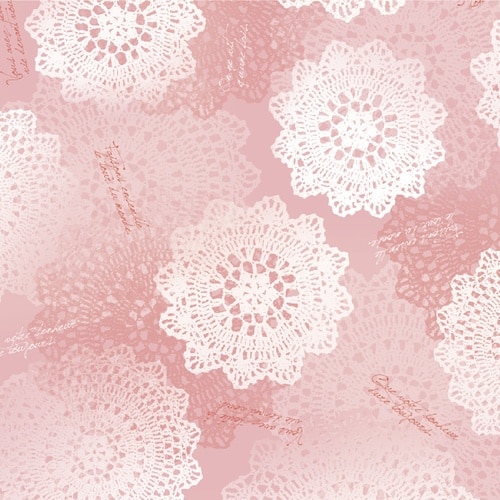 美しいレース柄の包装紙です。上品なピンクに重ねられたレースのデザイン。 |