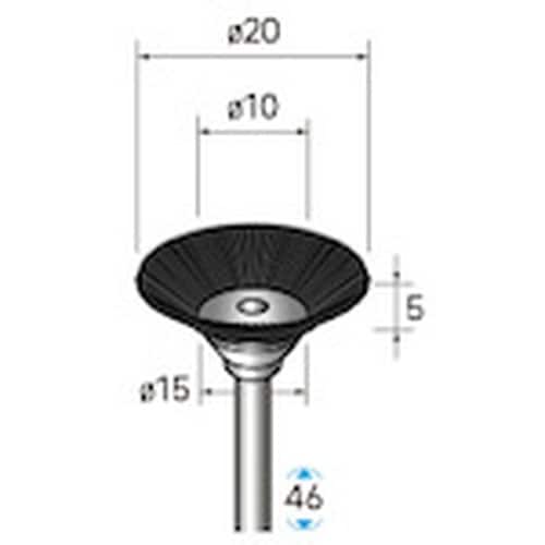 毛材:馬毛 | 外径(mm):20 | 幅(mm):5 | 軸径(mm):3 | 全長(mm):46 | 最高使用回転数(rpm):10000 | 形…