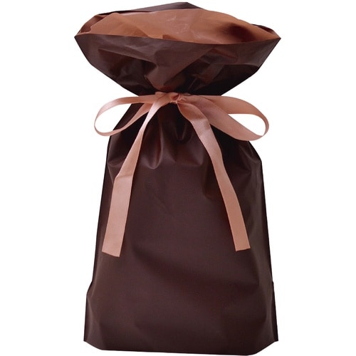中身を入れて、両サイドのリボンを引っ張るだけで簡単に包める袋です。 |