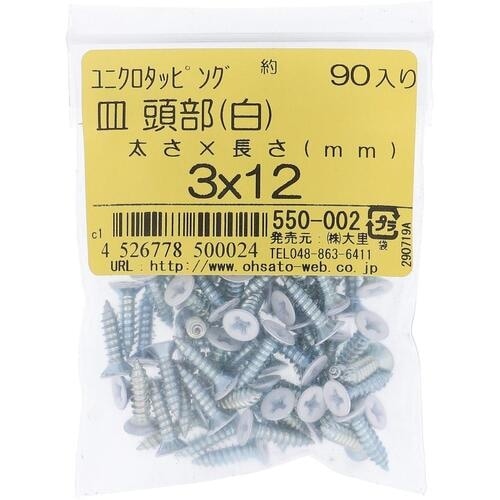 OHSATO OHSATO ユニクロ カラータッピング サラ シロ 3X12(90) 550002 1袋(90本) A081-9018