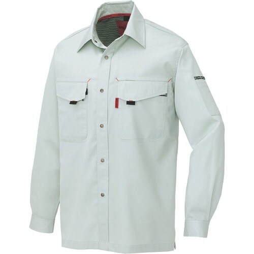 色:シルバーグレー | サイズ:L | タイプ:長袖 | その他仕様:液アン加工(形態安定) | 前立て:ドットボタン(金属) | ポケットファスナー…
