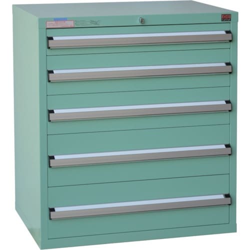 シンプルで安全なキャビネットです。ラッチ機構付きです。引き出し1段毎に自動ロック装置付きで不意な飛び出しを防止します。