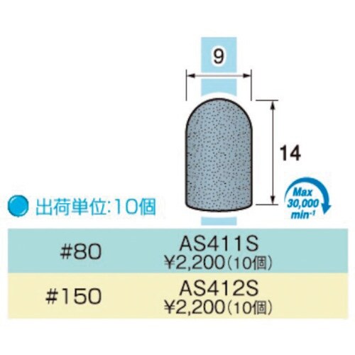 粒度(#):150 | その他仕様:φ9×14mm厚 | その他仕様:#150 | 単位:1Pk(10本)