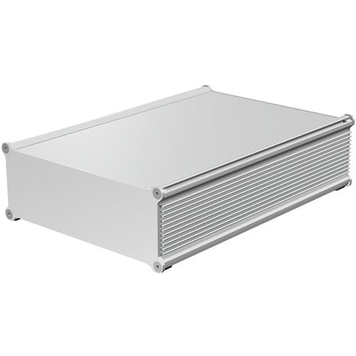 ヒートシンク形状のアルミ押出材を使用し、パネルはシルバーアルマイト仕上げで洗練されたデザインです。ボディーフレーム内部・パネル裏面が導通しており、シールド効果のあるケースです。