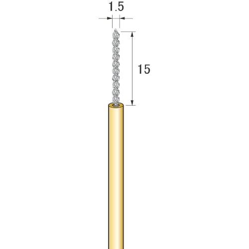 粒度(#):2000 | 軸径(mm):3 | その他仕様:シングルスパイラル巻 | 線径(mm):0.2 | 直径(mm):1.5 | 毛材:A砥粒…