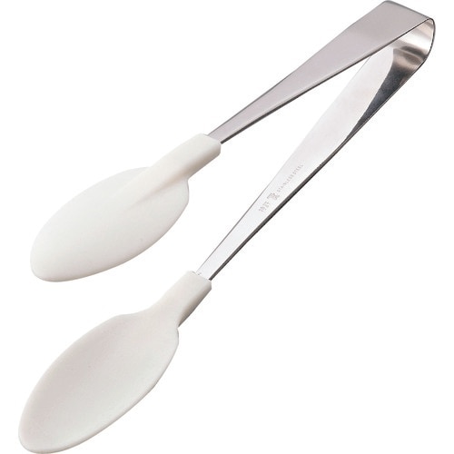 ステンレススチール・先端には柔軟性があり滑りにくい素材のエラストマー樹脂を使用して いますので、食品を優しく包むようにつかめます。 |