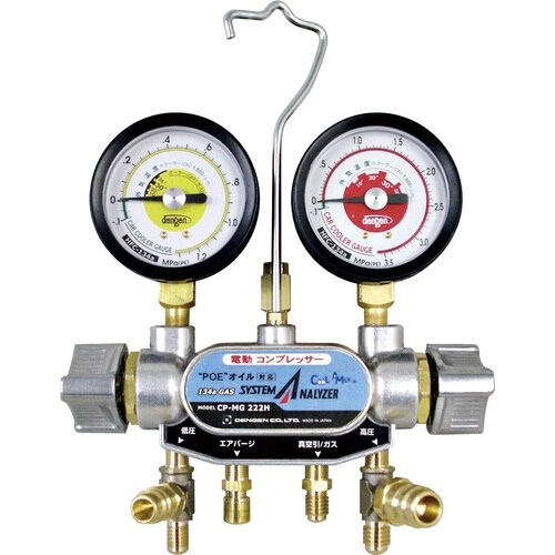 デンゲン dengen HFC−134a・POE用 2バルブマニホールドゲージ CPMG222H 1個 A083-3870