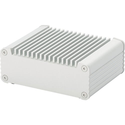 上面がヒートシンク形状で、効率良く放熱が出来る形状の熱対策アルミケースです。産業用ファンレスPCパワーアンプ電源装置など、発熱の多い機器に最適です。