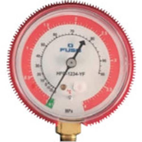 R1234yf冷媒飽和温度目盛付です。振動吸収機構タイプで数値が読み取りやすいです。マニホールドのゲージ交換用に。