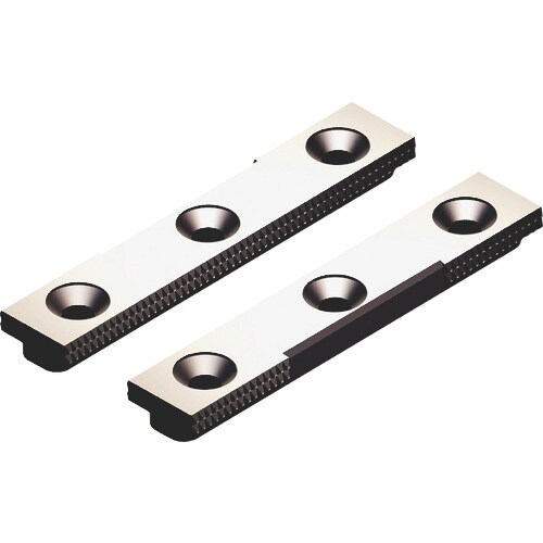 1.5mmピッチのグリップがついたインサート式口金です。リバーシブルで、片側は口金の中央部にグリップが付いておらず、ワークを傷付けずにクランプできます。一般的な被削材のクランプに向いています。 |