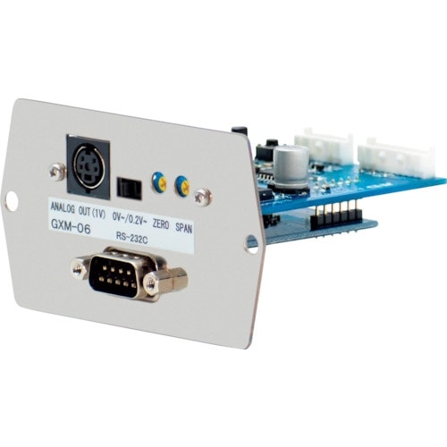 電子天びんGX−M、GF−M用アナログ出力(0−1Vまたは0.2−1V)/RS−232Cです。※標準のUSB、RS−232C部に取り付けるため、USBを同時に使用できません。 |