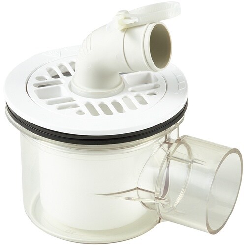 VP・VUパイプ兼用です。トラップの外側が透明のため、接合状態が目視で確認できます。横引きの洗濯機排水トラップです。洗濯機用の排水トラップとして。 |