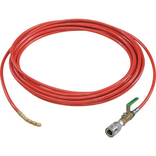 ポリウレタンチューブにポリウレタンカバーの2層構造。柔軟性に優れ、折れ曲がってもクセがつかず扱いやすい。外層が樹脂のため、パイプ・継手にキズがつきにくい。先端は曲管に対応した4連スネークノズル。 |