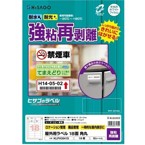 HISAGO ラベル 屋外ラベル強粘再剥離 18面 KLPH3041S 1冊(10枚)