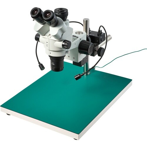 カメラが接続できる三眼実体顕微鏡大きい観察対象に最適(スポット照明付)お手持ちのCマウントカメラ※と接続して、撮影と観察作業が同時に行える三眼実体顕微鏡です。フレキシブルアームのスポット照明付き。 |