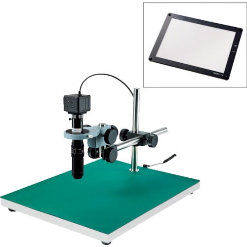 新定番USBカメラ × 高画質な高倍率ズームレンズ大きい観察対象に最適(面発光照明付)価格と性能を両立した300万画素USBカメラのセットです。A4サイズの面発光照明付き。様々な拡大検視に。 |