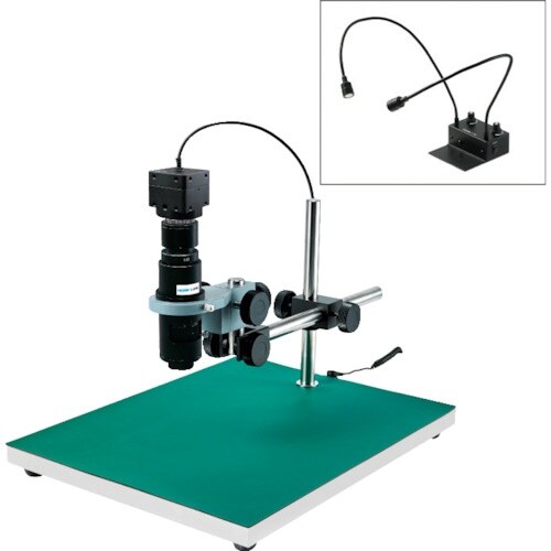 高性能USBカメラ×高倍率ズームレンズです。大きい観察対象に最適(スポット照明付)です。堅牢で取付ネジを多数備えた500万画素USBカメラのセットです。