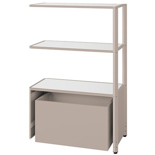 NAIKI シェルフラック(下段ボックス メレム MU型/天板:サテンホワイト 本体:サテンアッシュトープ/W925×H1393 MU0914RUSSTSW 1台 A084-9007