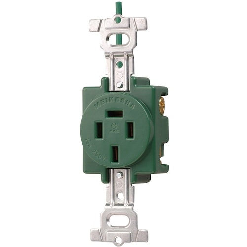 定格:15A 250V | 色:緑 | タイプ:埋込コンセント(接地リード線付) | 極数:接地3P | 単位:1個