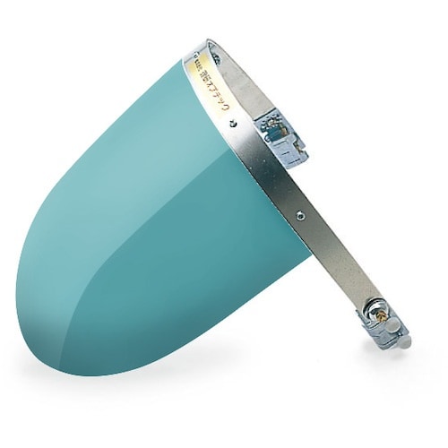 野球帽型ヘルメットに取付可能です。ねじ止め式でしっかり固定します。球面レンズタイプです。アクリルレンズなので透明度が高く、作業時に視界を邪魔しません。 |