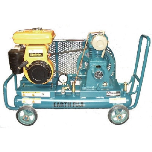 空冷一段エンジン搭載形コンプレッサ<軽便形>。コンパクト設計の為、現場の運搬・移動が便利です。双銅タンクになっているため、重心が低く、安定し、振動が少ないです。