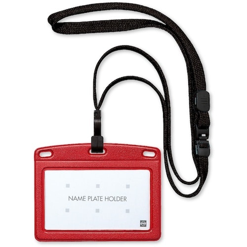 高級感のあるレザー調吊り下げ名札です。名刺などのストックができる2ポケットタイプです。ストラップはワンタッチで脱着可能です。ストラップを強く引っ張ると安全装置が働き、事故を防止します。 |