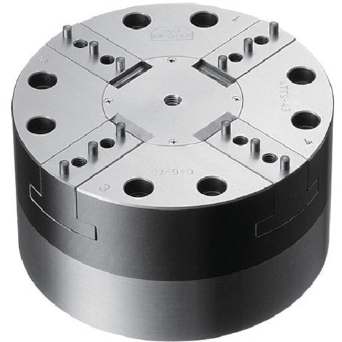 センター穴を利用して、クーラント、着座確認、切粉除去が可能です。爪スライド部にオイルミストを供給するので、防塵効果に優れています。測定、加工、研磨、旋盤、搬送などに。