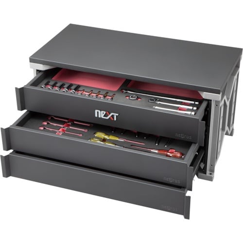 個人の用途に合わせて仕様を選択でき、拡張な用意なケース「nepros neXT」シリーズを採用しています。ラチェットハンドルはNBR390Aをセットしています。 |