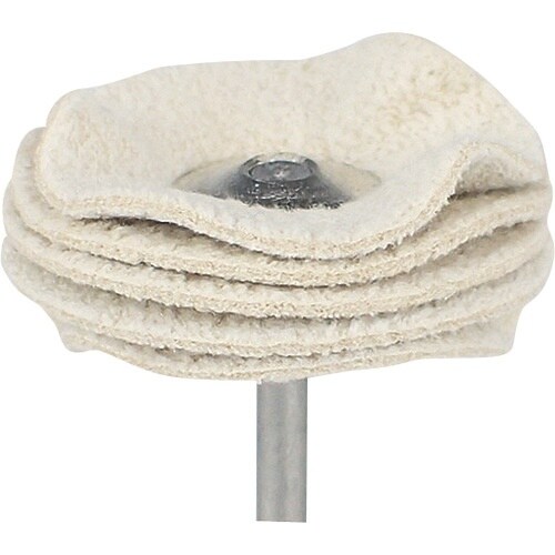 ソフトなフェルト地を5枚重ねにしたバフです。カラーバッファーは軸付き(かしめ)タイプですので、マンドレールには装着できません。金属から樹脂製品の仕上げに。