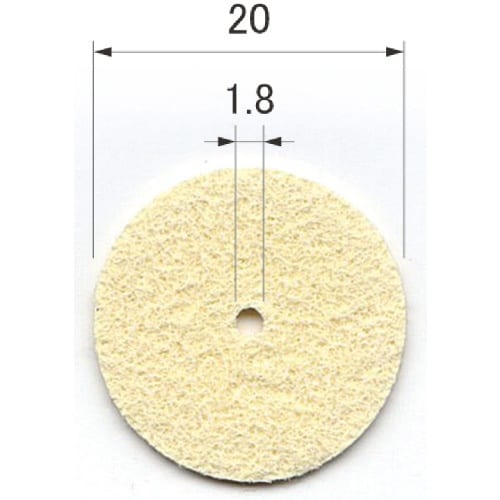 特殊フェルトに研磨材を含浸させているのでそのままお使いできます。重ね合わせたフェルトが発熱を抑え連続しての使用を可能にしました。金属から樹脂製品の仕上げに。 |