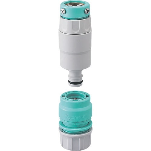 吐水口外径15ー20mmの水栓に適合。適合ホース:内径12ー15mm、外径18ー20mm。蛇口と散水ホースをワンタッチでつなぐ。 |