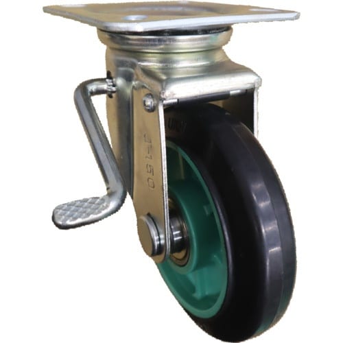 ヨドノ 樹脂ホイル付ゴム車輪(ベアリング入)自在車左ストッパー付 許容荷重215.6daN PNJBL200 1個