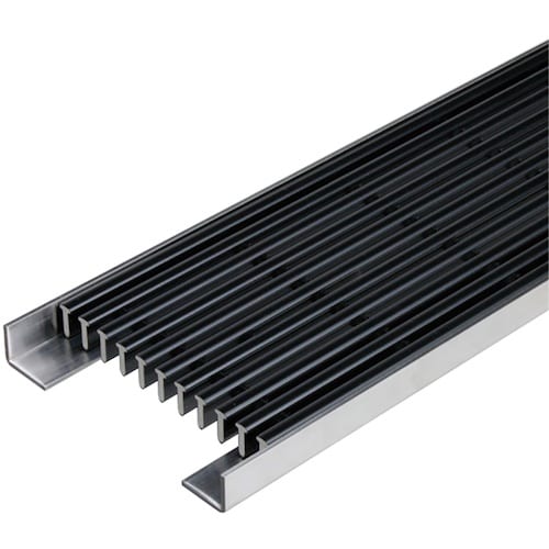 バリアフリー対応の納まりに適した、縦目タイプのグレーチングです。メインバーの主材料は、強度に優れた硬質ポリ塩化ビニルを採用、メインバー表面は、素肌に優しく、ノンスリップ効果のある軟質素材としました。 |
