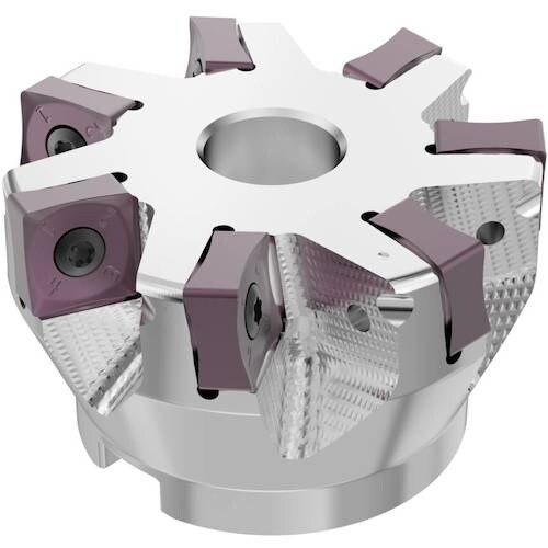 経済的な両面8コーナーインサートを備え、高い切込み深さを提供するフェースミルです。