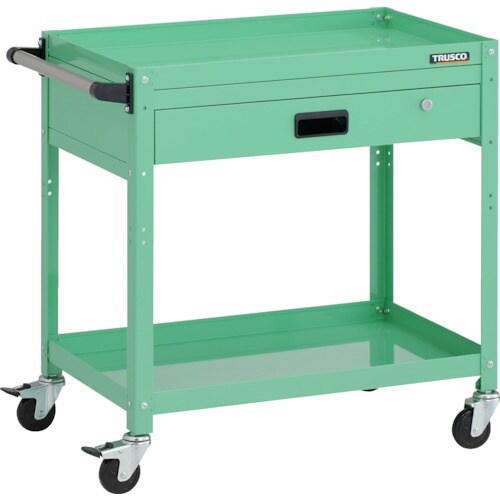 TRUSCO ツールワゴン ラビットワゴン 700X450XH740 2段 1段引出付 ハンドル付 ゴム車輪 ヤンググリーン RBW772VHYG 1台