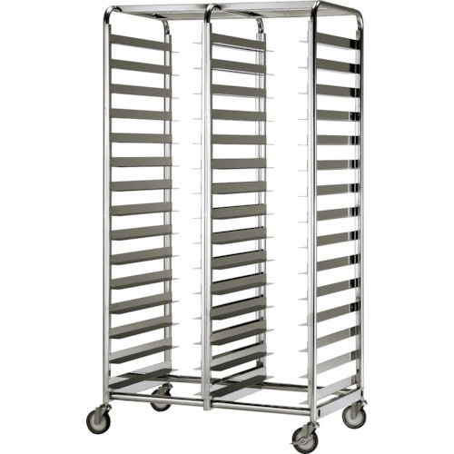 トレーや樹脂コンテナなどの容器を多段階に収納し運搬・保管できます。