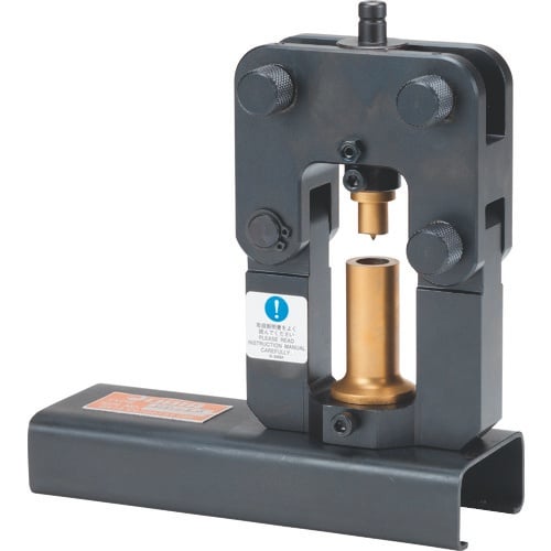 レースウエイ、ダクターチャンネル、サスウエイ、パイプハンガーの鉄、ステンレス部材への穴開け作業用アタッチメントです。部材を先端から通さなくても途中で穴開けができるクランプ方式を採用しています。 |