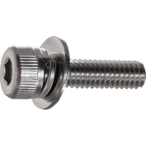 六角穴付ボルトにワッシャー(JIS座金)・スプリングワッシャーを組み込んだ商品です。緩み止めや座面の陥没を防ぐために使われる座金を、予めネジに組み込んだものです。ヘキサゴンパック入りです。 |