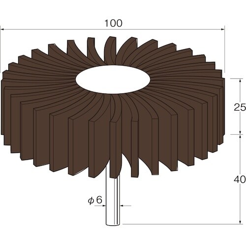 粒度(#):100 | 外径(mm):100 | 幅(mm):25 | 軸径(mm):6 | 軸長(mm):40 | 最高使用回転数(rpm):900…