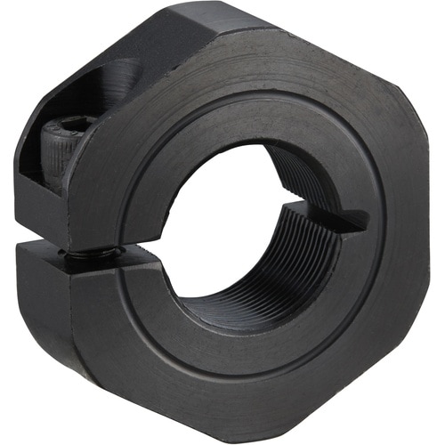 締結力の強いスタンダードスリットカラーです。面で締め付けるため締結力が強く、シャフトに傷が付きにくいタイプです。ネジシャフト(細目)にご使用いただけます。