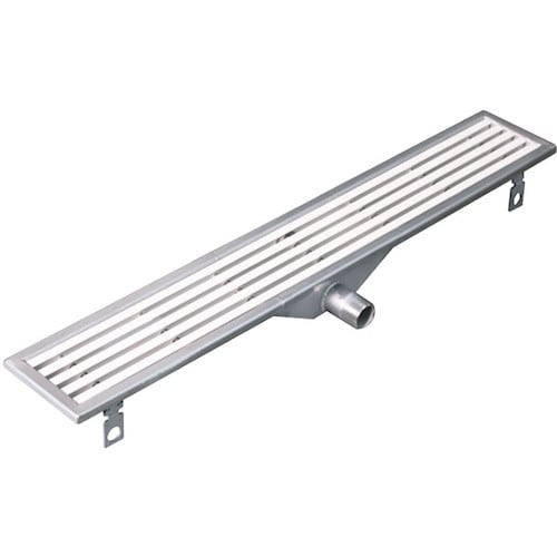 水の浸入を抑え、床洗浄時の排水を行うための水切りユニットです。スリット蓋は、素肌にやさしく滑り止め効果のある表面素材の樹脂製です。すきま6mmの細目タイプで、車椅子での通過もスムーズです。 |