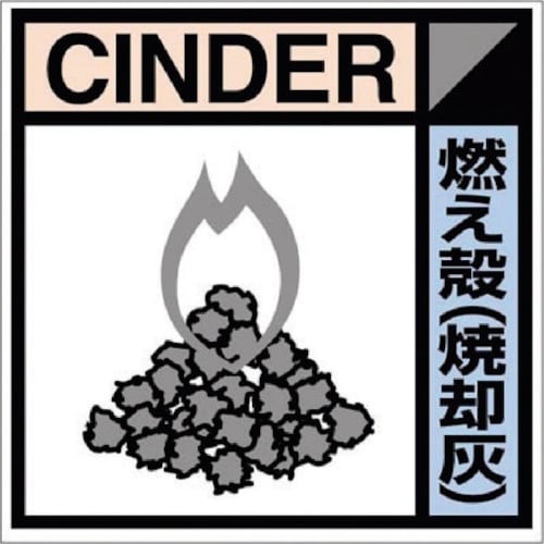 表示内容:燃え殻(焼却灰) | 取付仕様:粘着シール | 縦(mm):100 | 横(mm):100 | 取付方法:シール止め | 材質・仕上げ:塩化…