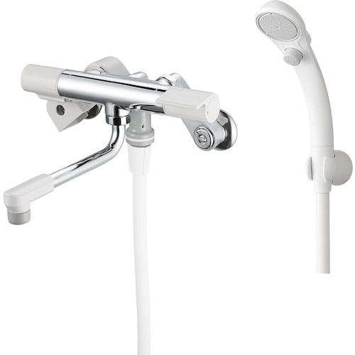 適温キープ:サーモカートリッジの働きで湯水の混合量を自動で調整し、常に一定の温度を保つことが出来ます。クリック機構:切替ハンドルにクリック機構を採用しました。