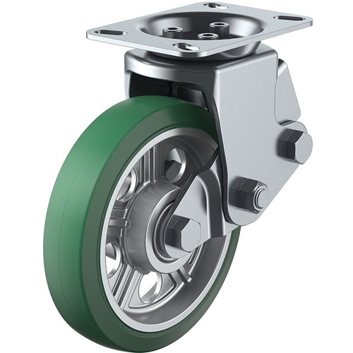 ユーエイ プレート式 固定 クッションキャスター 耐摩耗緑ゴム 車輪径200mm SKYタイプ SKY−2R型 取付寸法133×86(125×62) SKY2R200AWARGRA1 1個