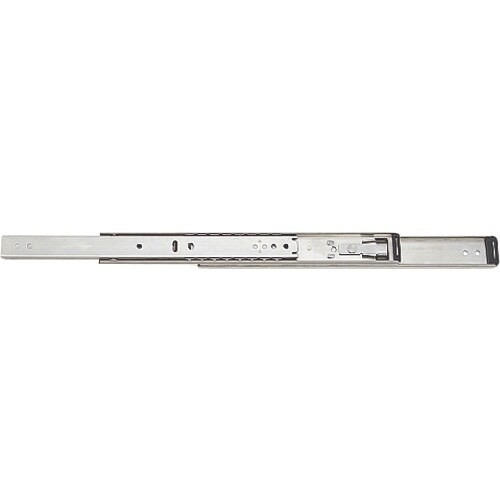 インナーメンバーを完全に引き出せる3段引のスライドレールです。レバー操作でインナーメンバーを取り外せます。レール全開時に、その状態を簡易的に保持します。 |