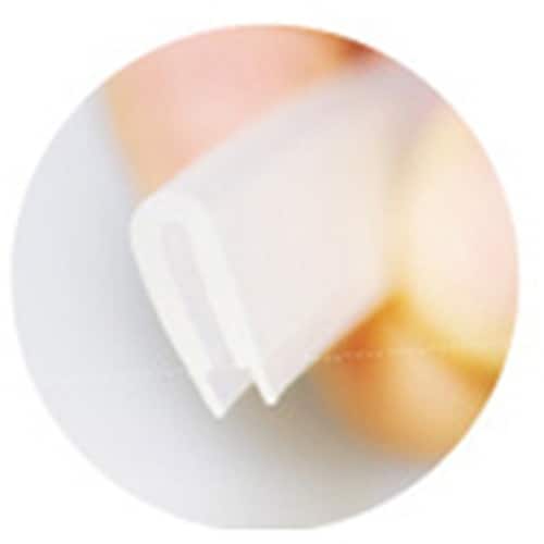カバーのエッジ部に最適です。塗料の過剰付着を防ぐため、段付形状になっています。成型品のため寸法誤差が生じます。