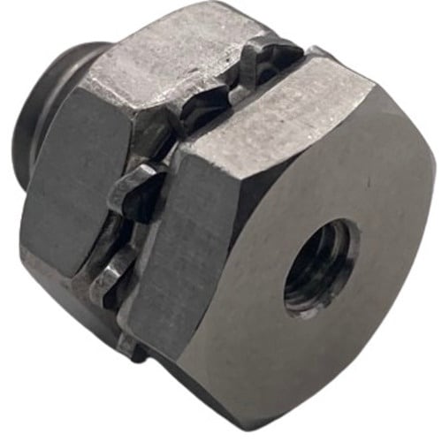 薄い板の丸穴に本品を挟み込むことでネジ加工ができない金属板、木材等にネジ穴を作ることができます。専用工具を使用せず歯付き座金と六角ナットで締め付ける構造です。薄い板へのねじ穴製作に。 |