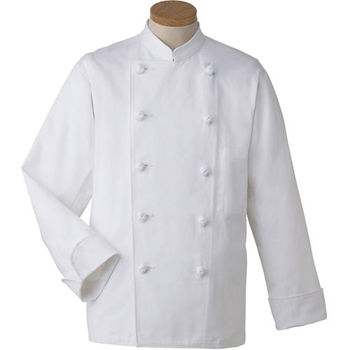 丈夫でシワになりにくく、乾きやすい[お手入れ簡単]なポリエステル混紡素材。いざという時に、鍋つかみとして使える[袖口カフス]は伝統の中で生まれたプロ仕様。 |